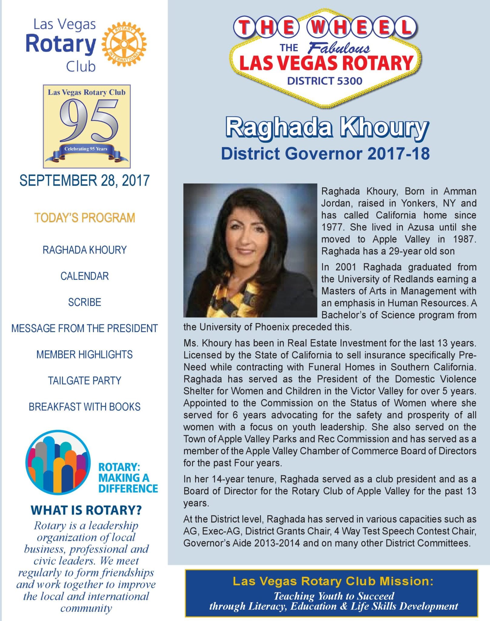 District Governor 2017-18, Raghada Khoury