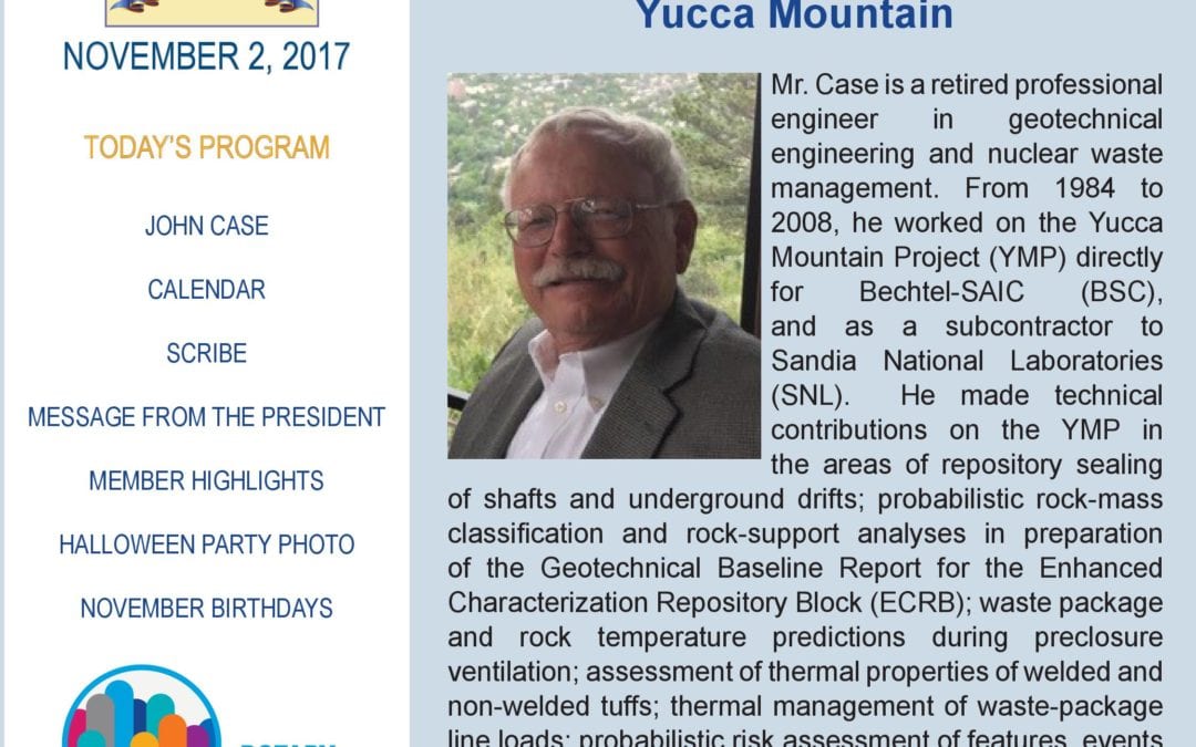 Listen to John Case – Yucca Mountain https://www.lasvegasrotary.com/wp-content/uploads/2017/11/20171102-las-vegas-rotary-club-speaker.mp3Podcast: Play in new window | DownloadSubscribe: Android | RSS The Wheel Download John Case – Yucca Mountain Mr. Case...