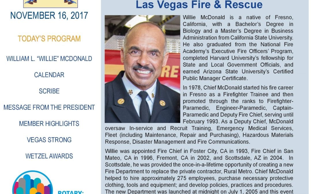 Listen to William McDonald – LV Fire & Rescue, Fire Chief https://www.lasvegasrotary.com/wp-content/uploads/2017/11/20171116-las-vegas-rotary-club-speaker.mp3Podcast: Play in new window | DownloadSubscribe: Android | RSS The Wheel Download William McDonald...