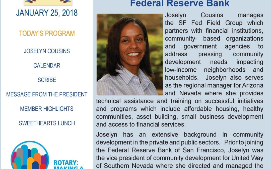 Listen to Joselyn Cousins – Federal Reserve Bank https://www.lasvegasrotary.com/wp-content/uploads/2018/01/20180125-las-vegas-rotary-club-speaker.mp3Podcast: Play in new window | DownloadSubscribe: Android | RSS The Wheel Download Joselyn Cousins – Federal...