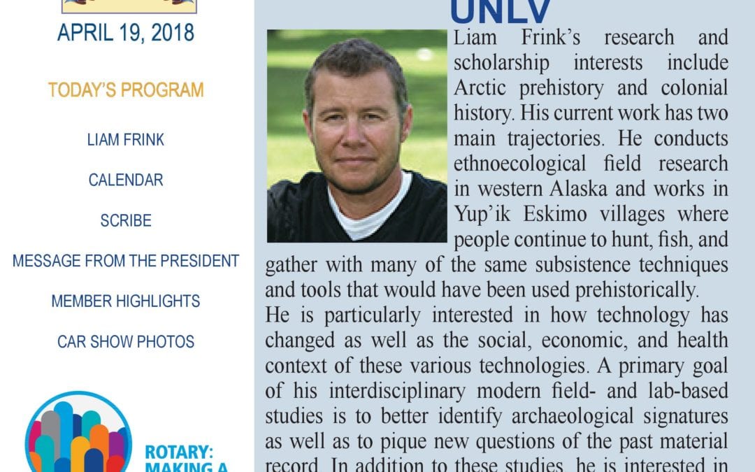 Listen to Nathan Harper – Archaeologist Springs Preserve https://www.lasvegasrotary.com/wp-content/uploads/2018/04/20180412-las-vegas-rotary-club-speaker.mp3Podcast: Play in new window | DownloadSubscribe: Android | RSS The Wheel Download Nathan Harper...