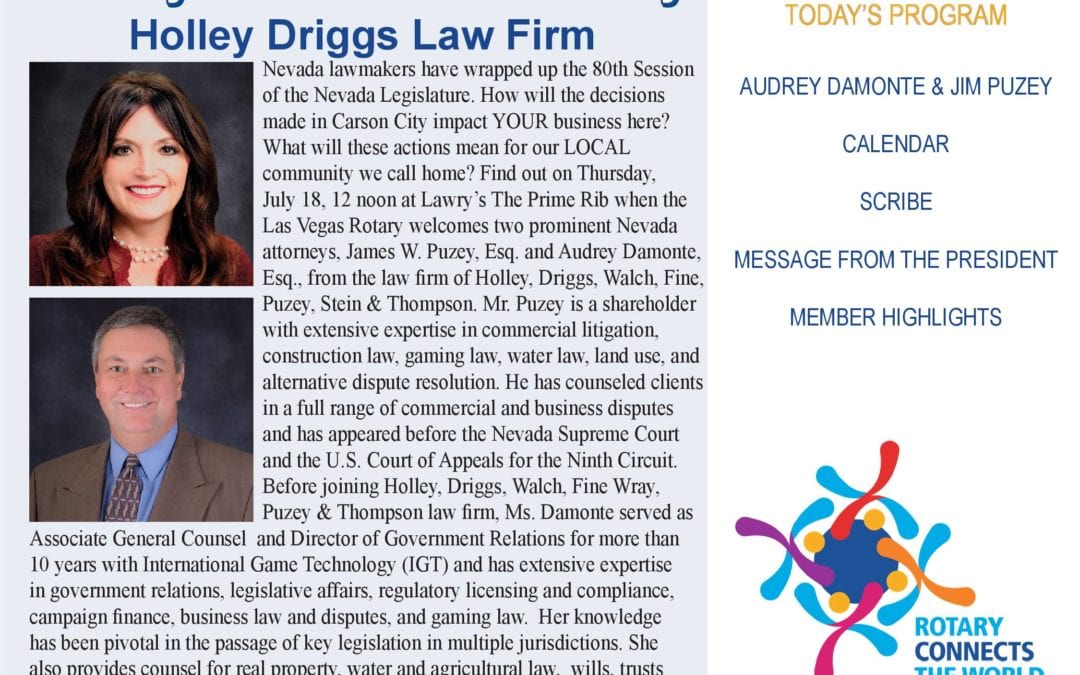 Listen to Audrey Damonte & Jim Puzey – Holley Driggs Law Firm The Wheel Download Audrey Damonte & Jim Puzey – Holley Driggs Law Firm Nevada lawmakers have wrapped up the 80th Session of the Nevada Legislature. How will the decisions made in Carson...