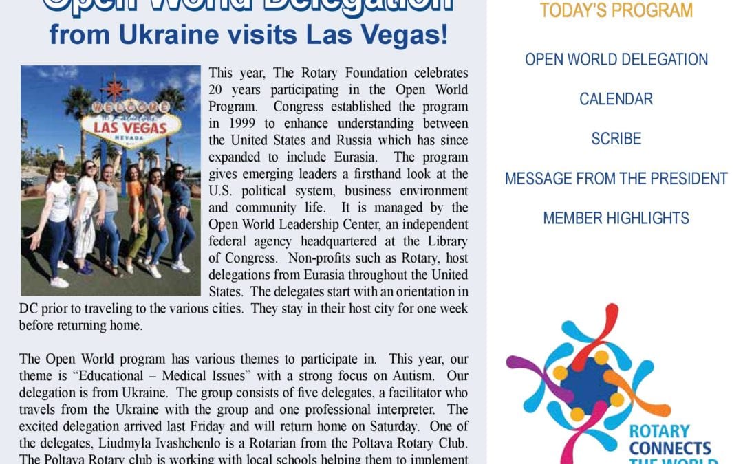 The Wheel Listen to Open World Delegation from Ukraine visits Las Vegas! The Wheel Download Open World Delegation from Ukraine visits Las Vegas! This year, The Rotary Foundation celebrates 20 years participating in the Open World Program. Congress established the...