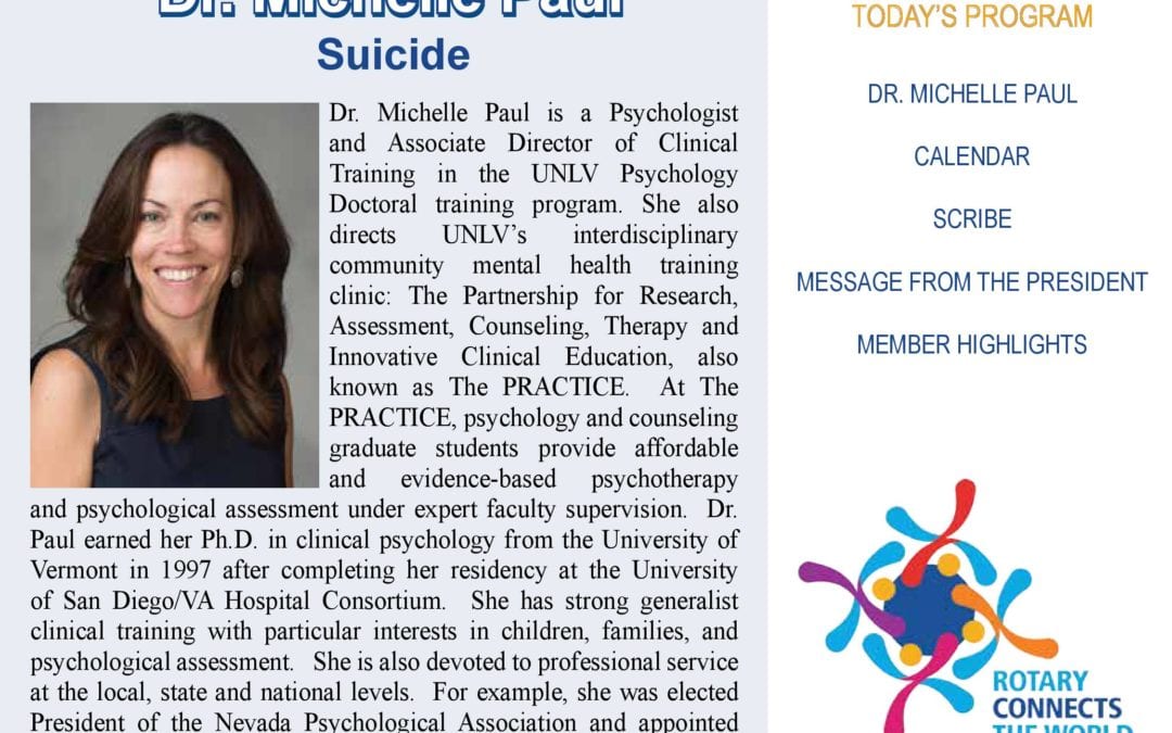 The Wheel Listen to Dr. Michelle Paul – Suicide The Wheel Download Dr. Michelle Paul – Suicide Dr. Michelle Paul is a Psychologist and Associate Director of Clinical Training in the UNLV Psychology Doctoral training program. She also directs UNLV’s...