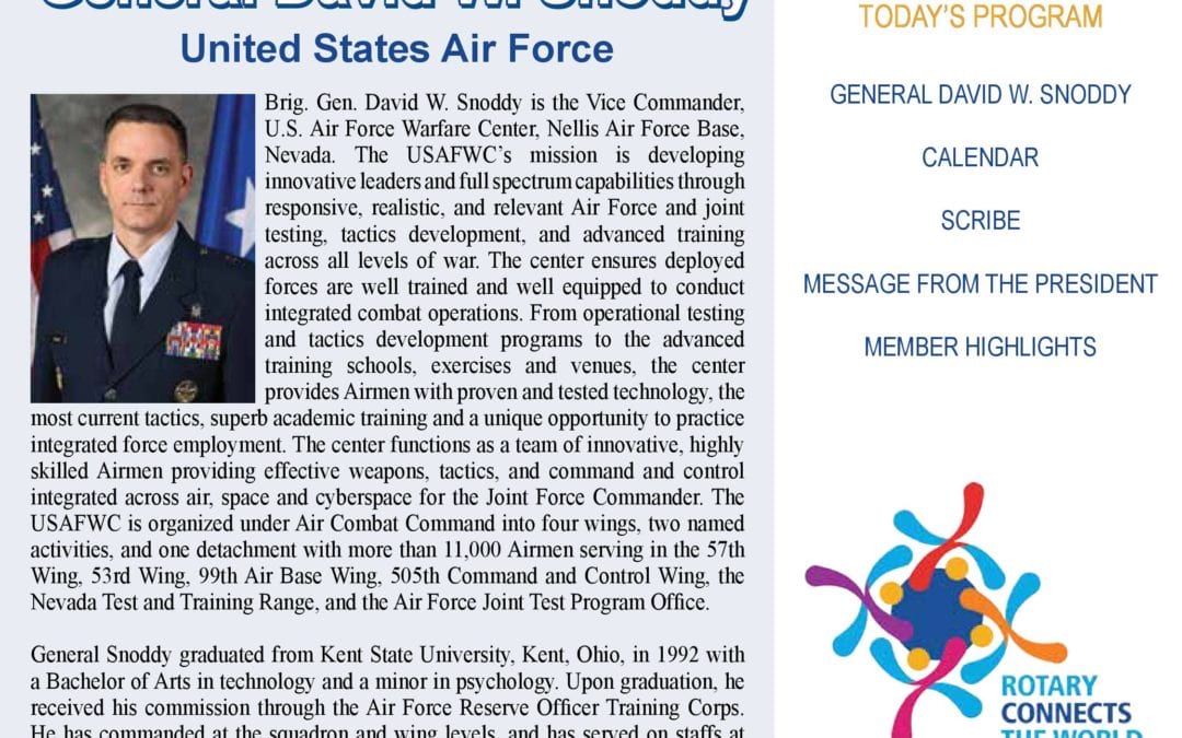 The Wheel Listen to General David W. Snoddy – United States Air Force The Wheel Download General David W. Snoddy – United States Air Force Brig. Gen. David W. Snoddy is the Vice Commander, U.S. Air Force Warfare Center, Nellis Air Force Base, Nevada. The...
