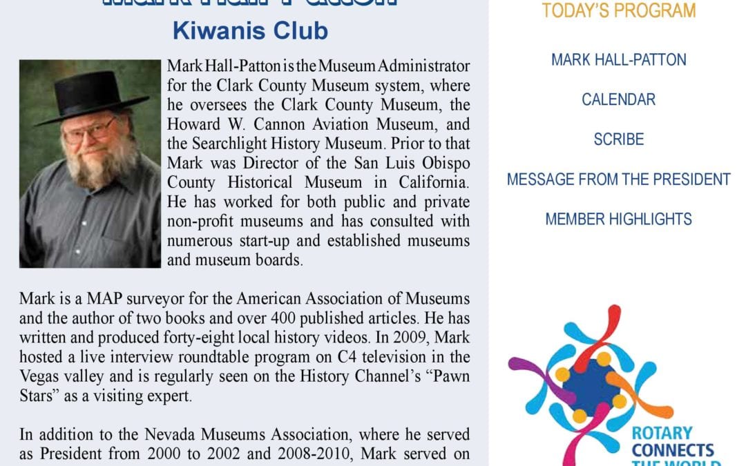 The Wheel Listen to Mark Hall-Patton – Kiwanis Club The Wheel Download Mark Hall-Patton – Kiwanis Club Mark Hall-Patton is the Museums Administrator for the Clark County museum system, where he oversees the Clark County Museum, the Howard W. Cannon...