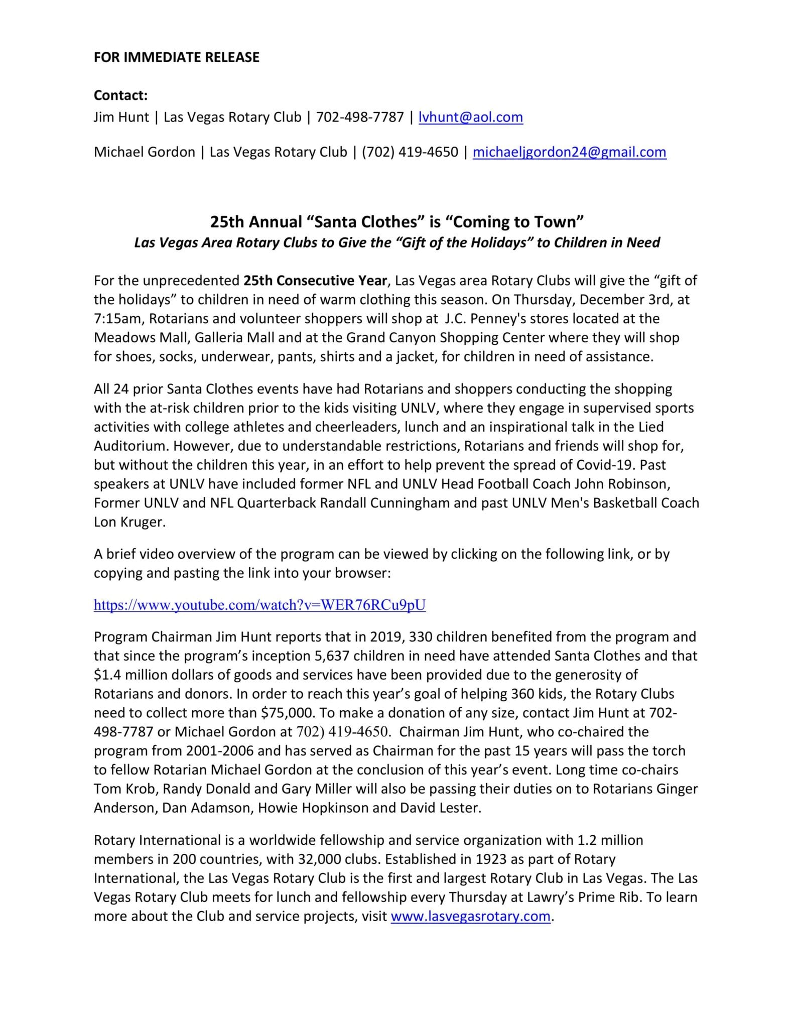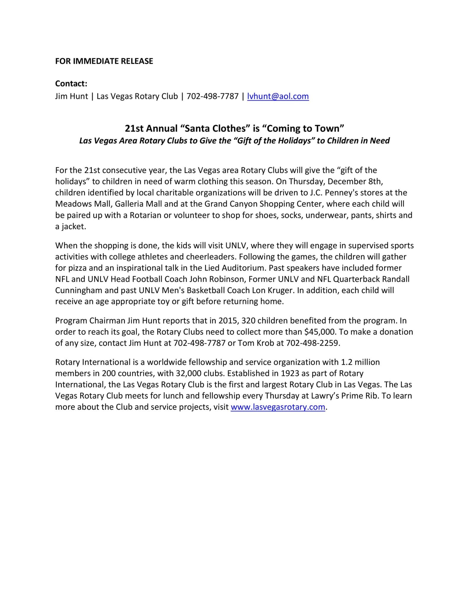 “Of all the programmes that we support around the globe helping to attract new players or supporting those who need boots or other equipment; there’s one event that touches our hearts every year – the Annual Santa Clothes programme in our “home town” of Las Vegas….
