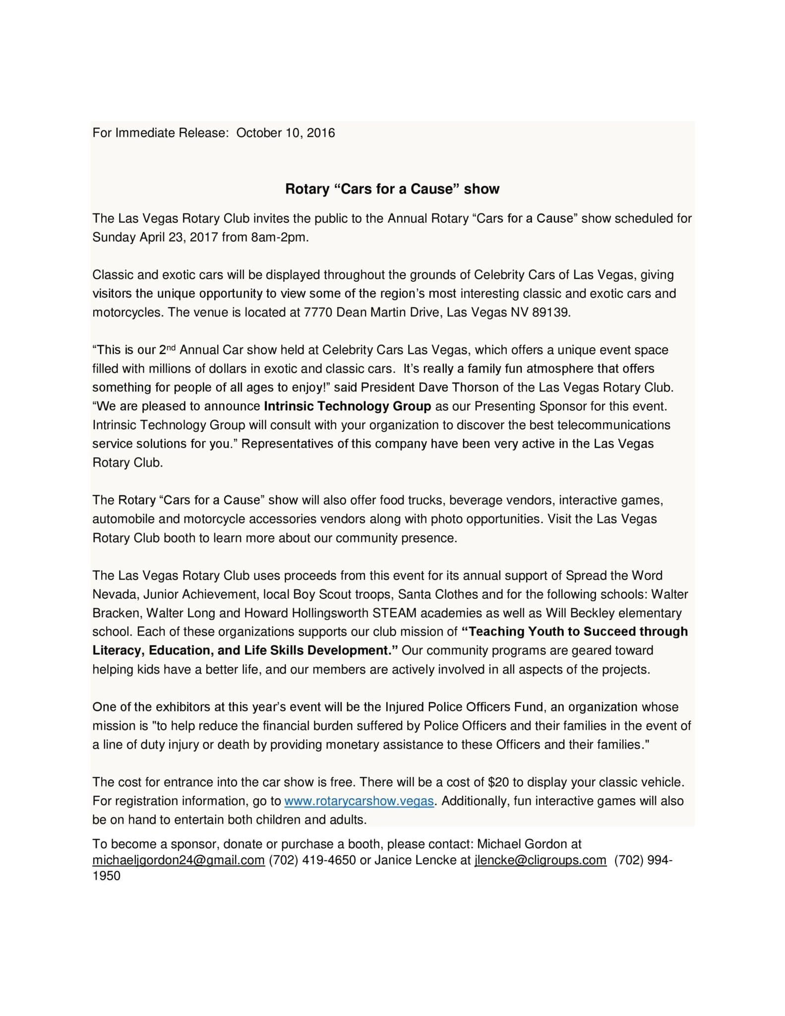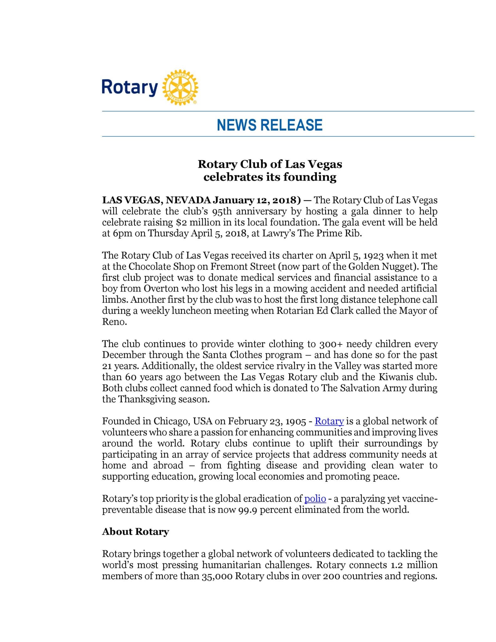 The Las Vegas Rotary Foundation, Inc. (“LVRF”) is registered with the Nevada Secretary of State and qualified by the Internal Revenue Services as a 501(c)(3) nonprofit organization (EIN: 88-0403571). Established in 1998, LVRF supports the Las Vegas Rotary Club. Las Vegas Rotary’s mission is “teaching youth to succeed through literacy, education & life skills development.” Your charitable contribution to LVRF is tax-deductible to the extent allowed by law.