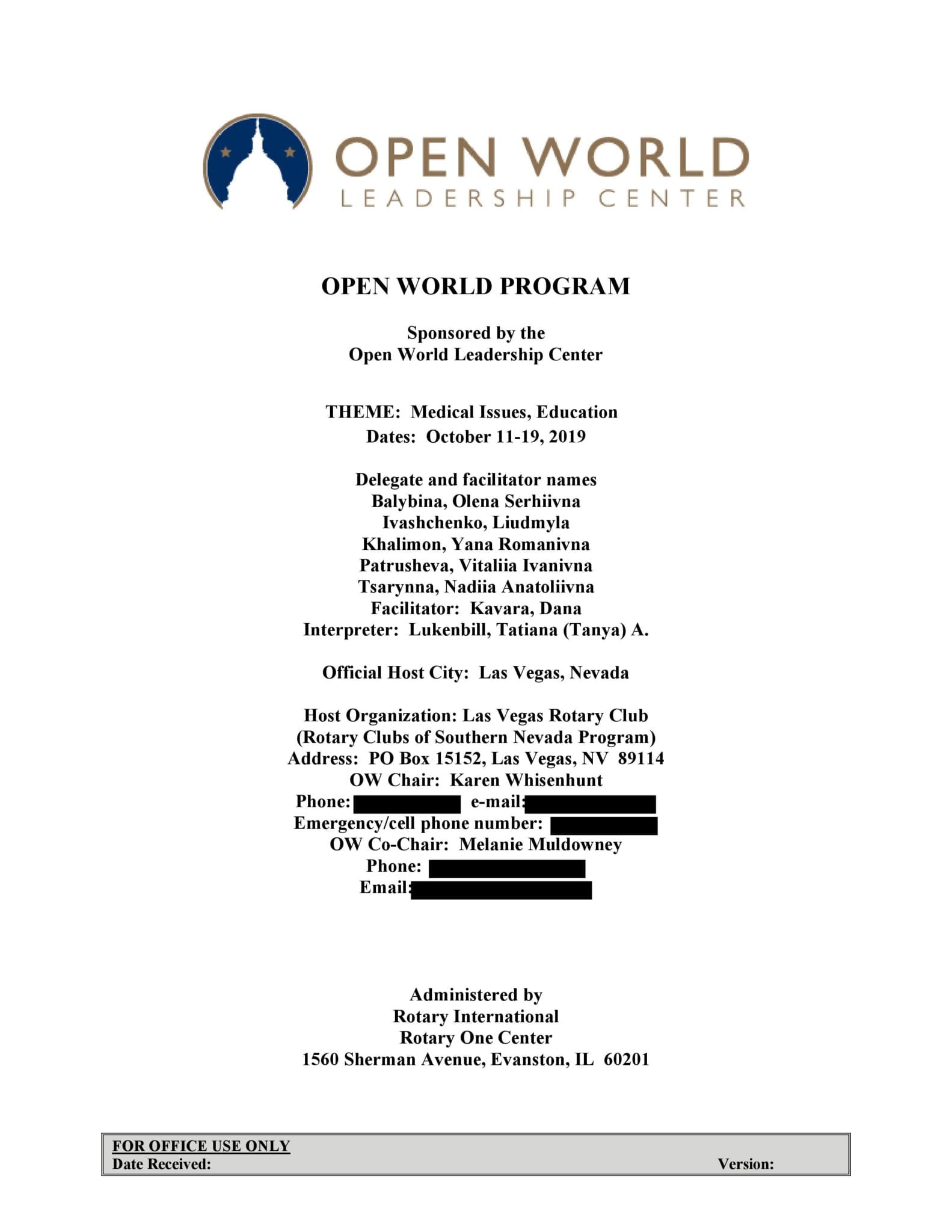 The Rotary Clubs of Southern Nevada hosted by the Las Vegas Rotary Club welcomed an Open World, Education, Medical Issues delegation from the Ukraine October 11-19, 2019. What a fun and educational week for the Rotarians and delegates!
