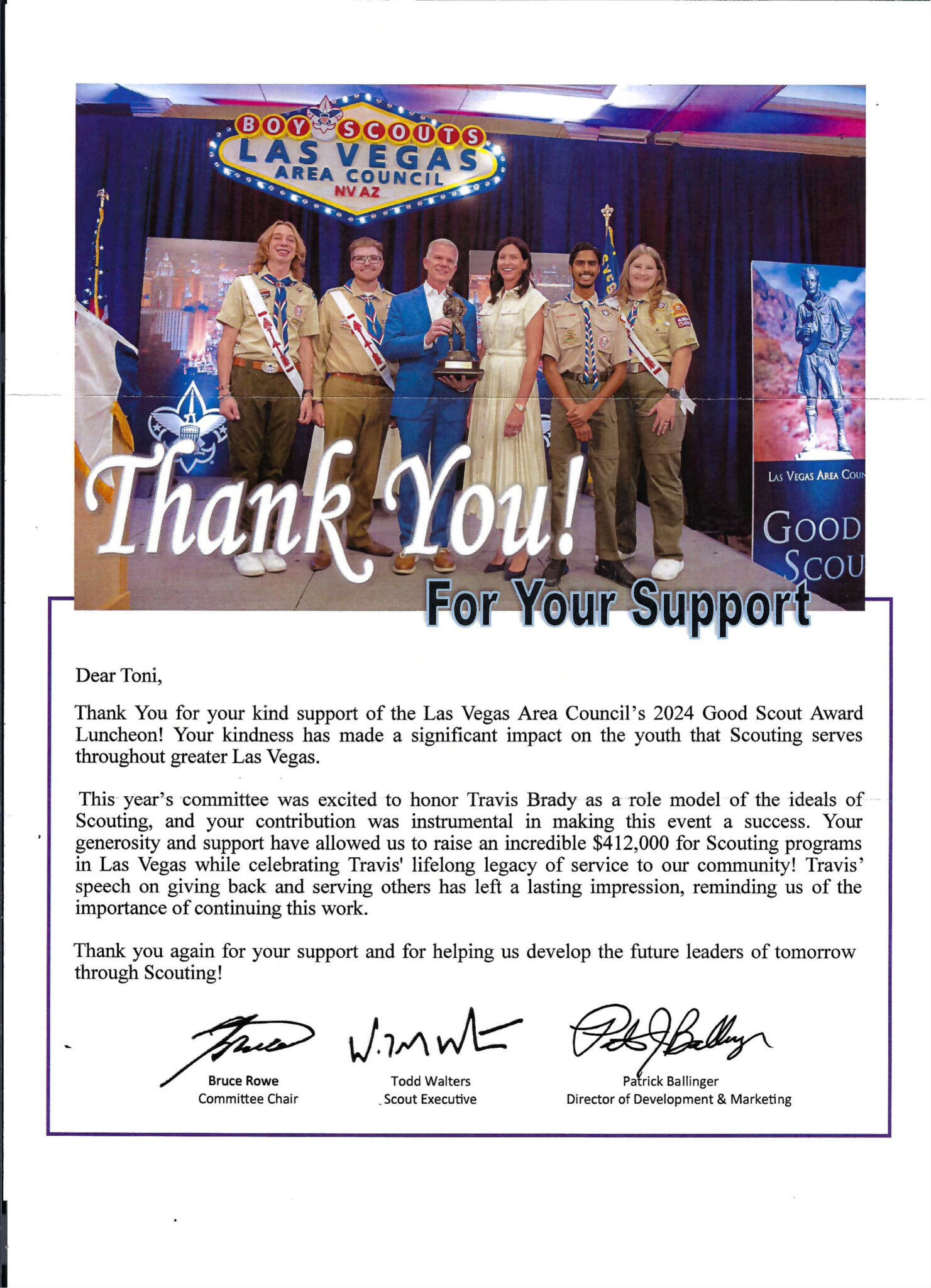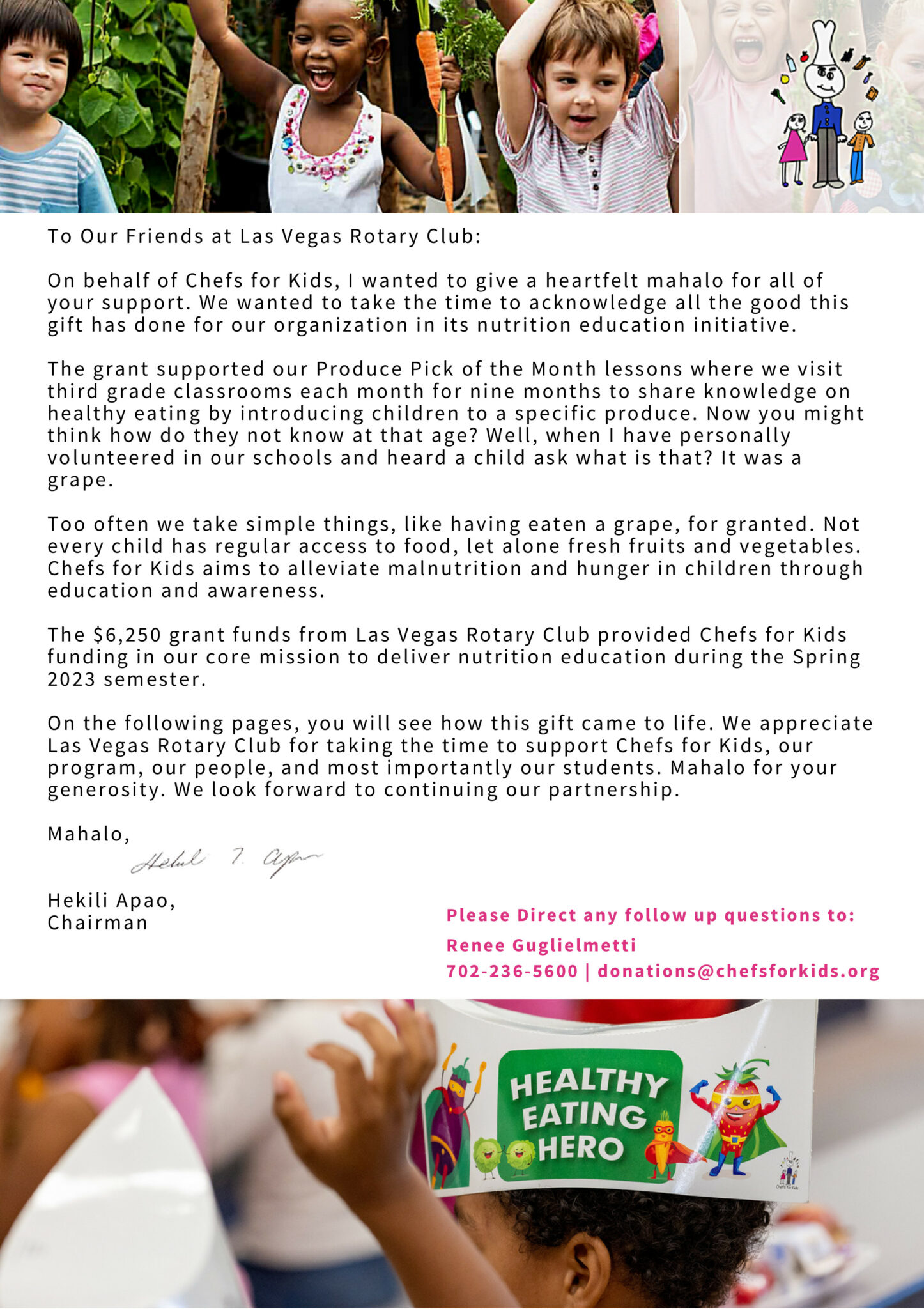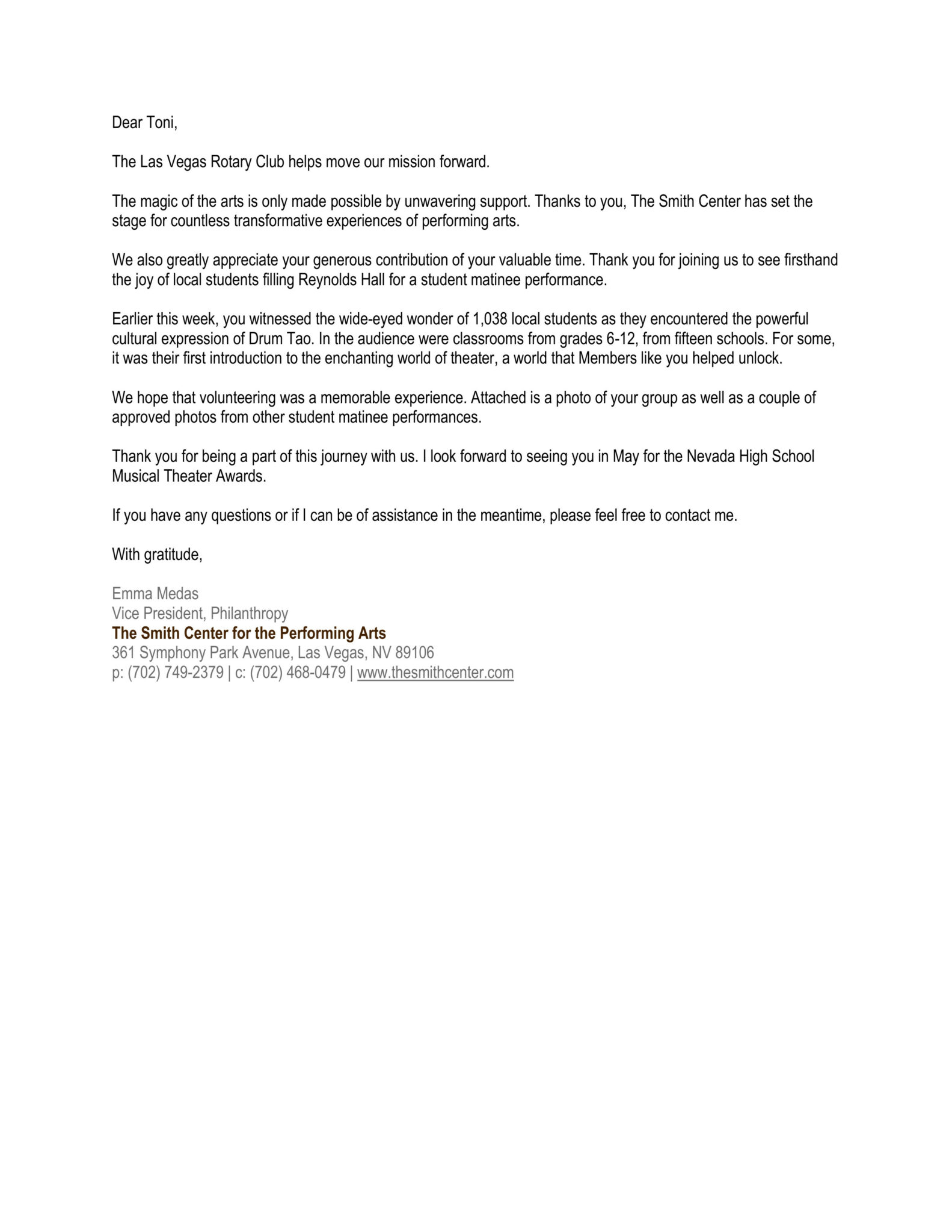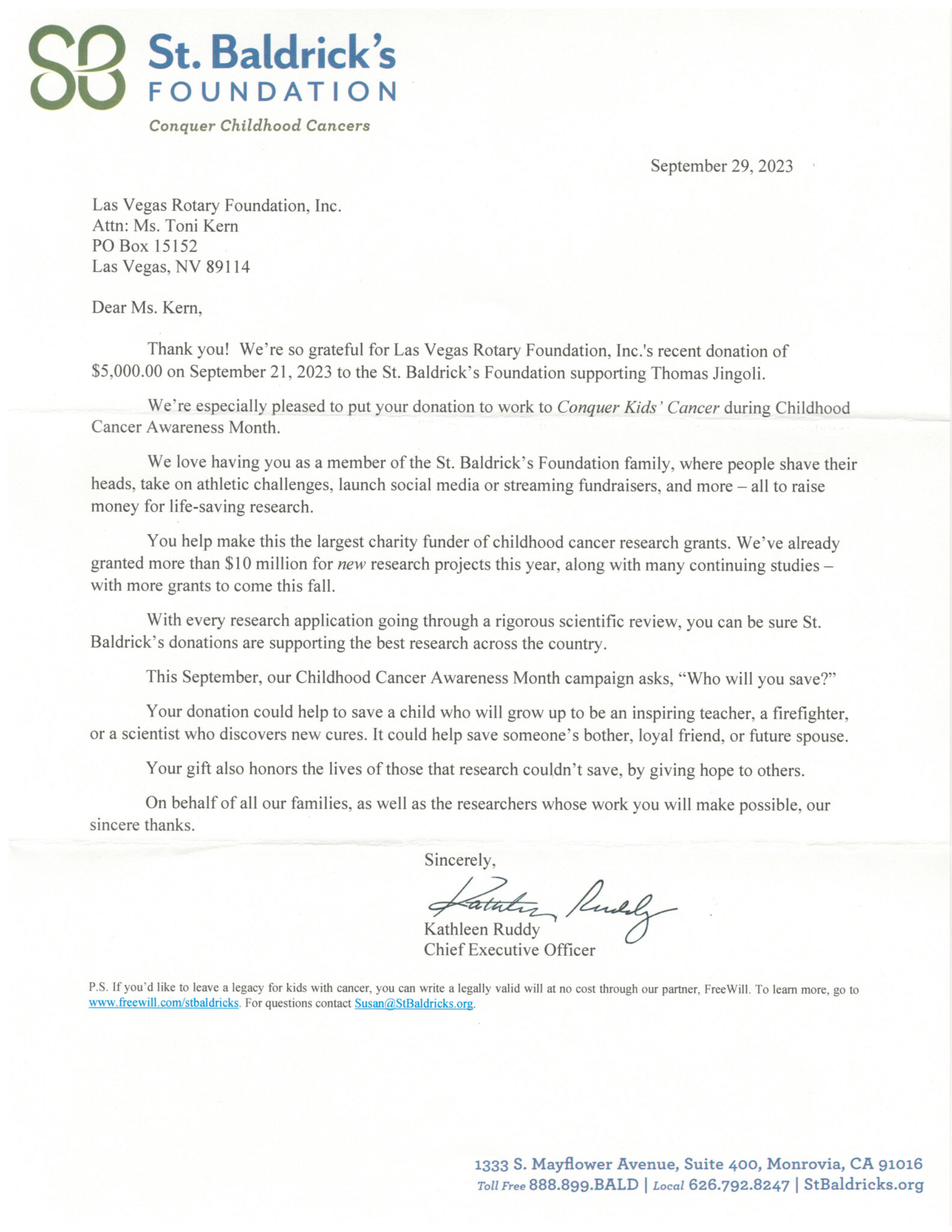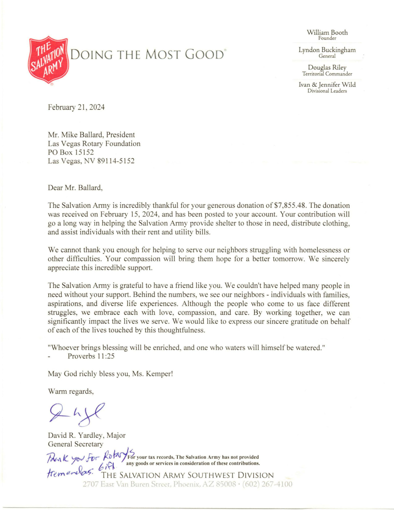 The Las Vegas Rotary Foundation, Inc. (“LVRF”) is registered with the Nevada Secretary of State and qualified by the Internal Revenue Services as a 501(c)(3) nonprofit organization (EIN: 88-0403571). Established in 1998, LVRF supports the Las Vegas Rotary Club. Las Vegas Rotary’s mission is “teaching youth to succeed through literacy, education & life skills development.” Your charitable contribution to LVRF is tax-deductible to the extent allowed by law.