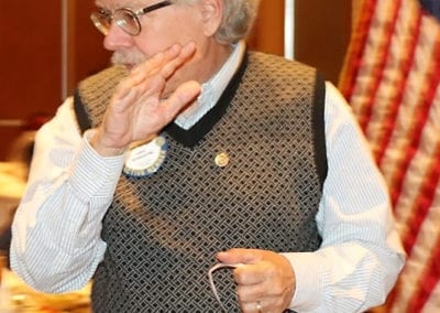 President Jim Kohl called the meeting to order. Tina Bishop gave the invocation. Ted McAdam, led the club in singing the Marine Corps Hymn, followed by the Pledge of Allegiance. The Sergeant at Arms was PP Steve Linder.