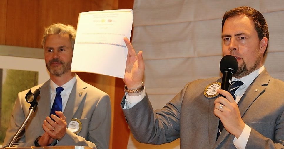 - PP/ADG Michael Gordon presented the Club with the RI President’s Citation, an achievement reached by ‘checking off all the boxes’; a Rotary video of People Of Action was viewed with President Jim encouraging members to send their photos for our ‘People of Action’; PP Karen Whisenhunt announced the kick off of the Tiberti Classic 9 hole putting event and BBQ on 5/19, a family friendly event, with proceeds going to Rotary Youth Exchange; Marie Walsh announced the last Breakfast With Books for the school year on 4/9; PP Michael Gordon announced debunking planning meeting at 11:30 a.m. before next week’s meeting; Tina Bishop provided a recap of an amazing experience with almost 400 enthusiastic kids at the recent RYLA weekend; 25 Club President Kim Nyoni reported a fulfilling and successful participation by members at the LV Mission serving more than 700 dinner meals and reminded members of the upcoming event at Pinot’s Palette on 4/18; Deb Granda reminded members of the Cuisine & Octane fundraising event 4/27 including cast members of Counting Cars attending and other highlights planned for this fantastic event; Francesca Gilbert was acknowledged for her 3rd year in the Top 25 Women in Real Estate recognition;
