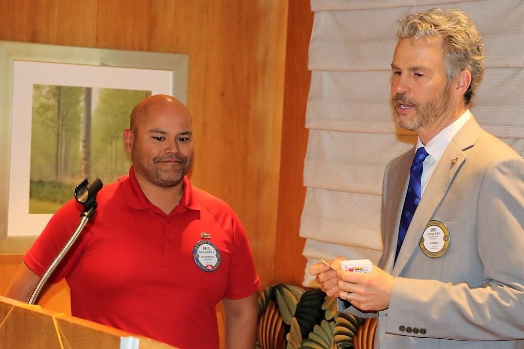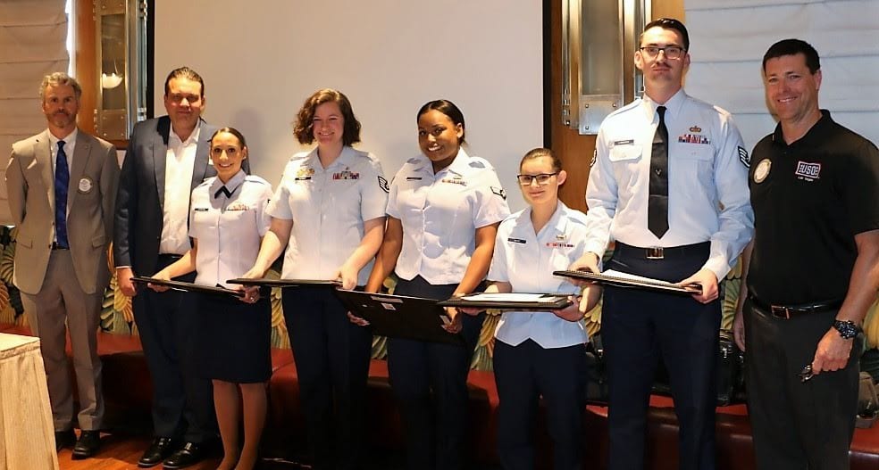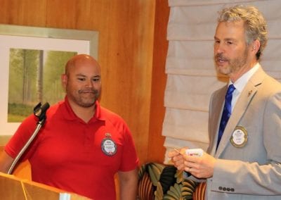 - PP David Thorson introduced the five recent Wetzel Award recipients, presenting them with framed certificates along with Lawry’s Bucks and Dan Hipple with the Terry Fator organization, presented each recipient with tickets to see the Terry Fator show, as part of Fator’s ‘give back’ to the military community;