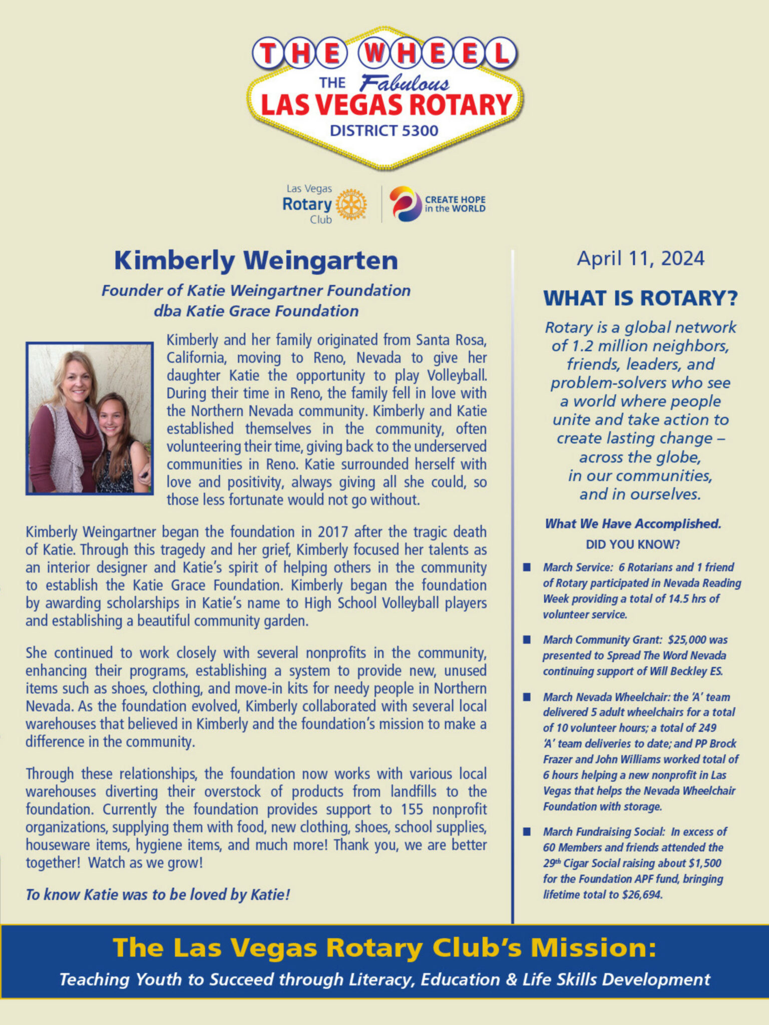 The Wheel for April 11, 2024 by Las Vegas Rotary ClubApr 11, 2024The Wheel0 comments The Wheel Download ← Previous Week Following Week → Submit a Comment Cancel replyYour email address will not be published. Required fields are marked *Comment * Name * Email * Website