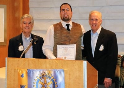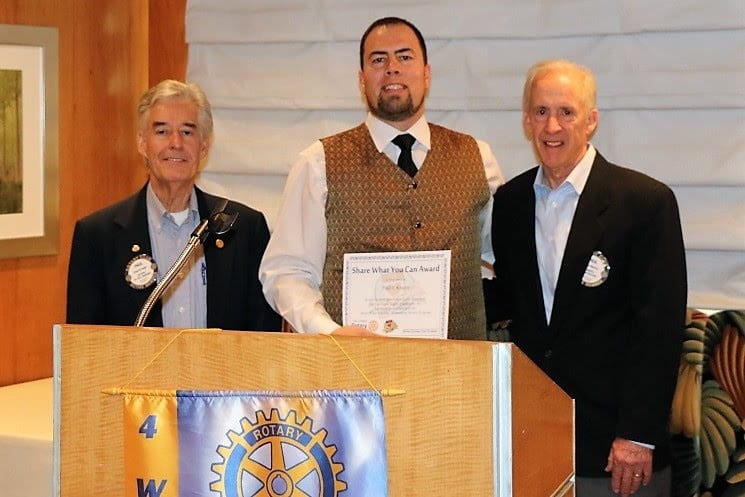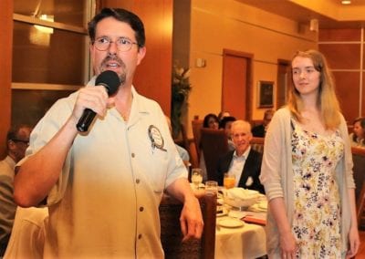of accomplishments of Mr. Tiberti, and the Tiberti Scholarship, and how to become a Tiberti Fellow. - President Michael Gordon (and Head Waiter Cesar) presented our speakers with a “Share What You Can” award to benefit a veteran in need and then adjourned the meeting.