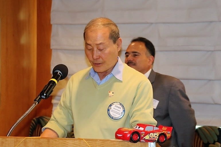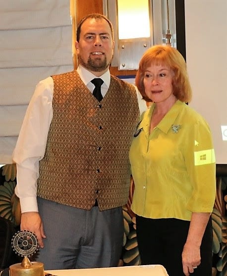 - President Michael Gordon (aka Lawry’s head waiter, Cesar) called the meeting to order followed by Lawry’s head waiter aka President Michael Gordon continuing to conduct our meeting in honor of April Fools Day. Steve Kwon gave the invocation. Jaime Goldsmith led the club in singing our National Anthem, followed by the Pledge of Allegiance. The Sergeant at Arms was Arleen Sirois.