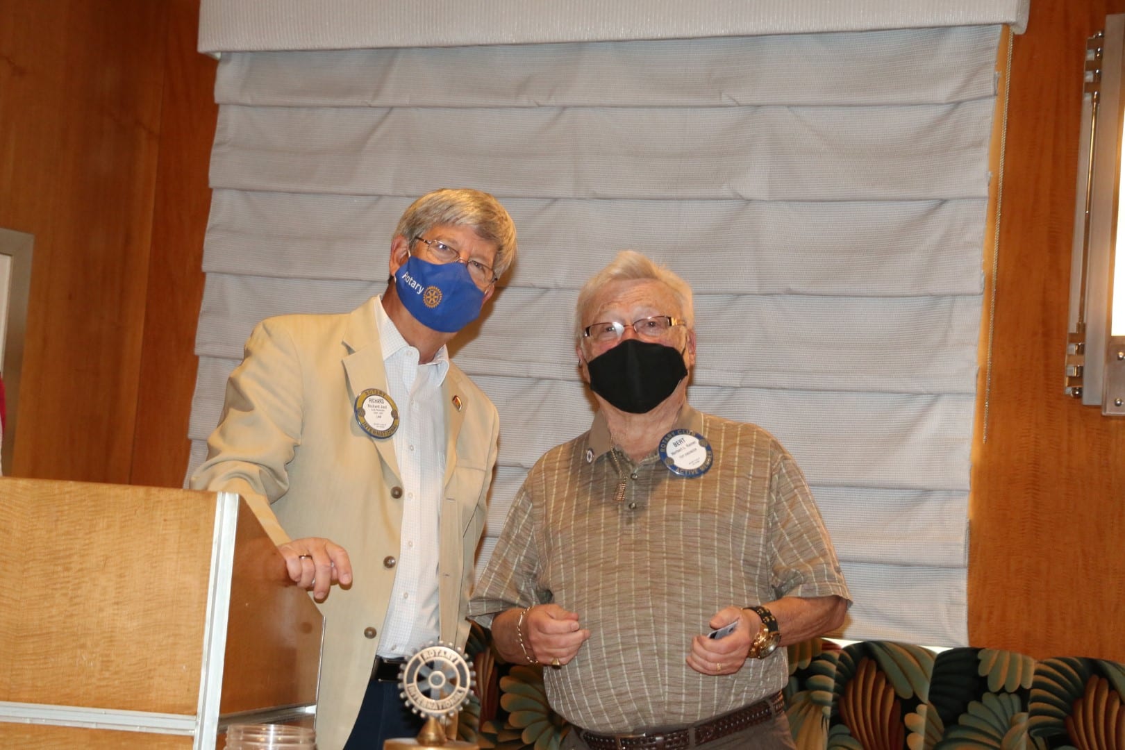 - The drawing began at $766 plus this week’s contributions, PP Karen Whisenhunt requested PP Jim Tucker draw for the Joker, who received the $10 consolation, and the Lawry’s Bucks Winner was Bert Reiner.