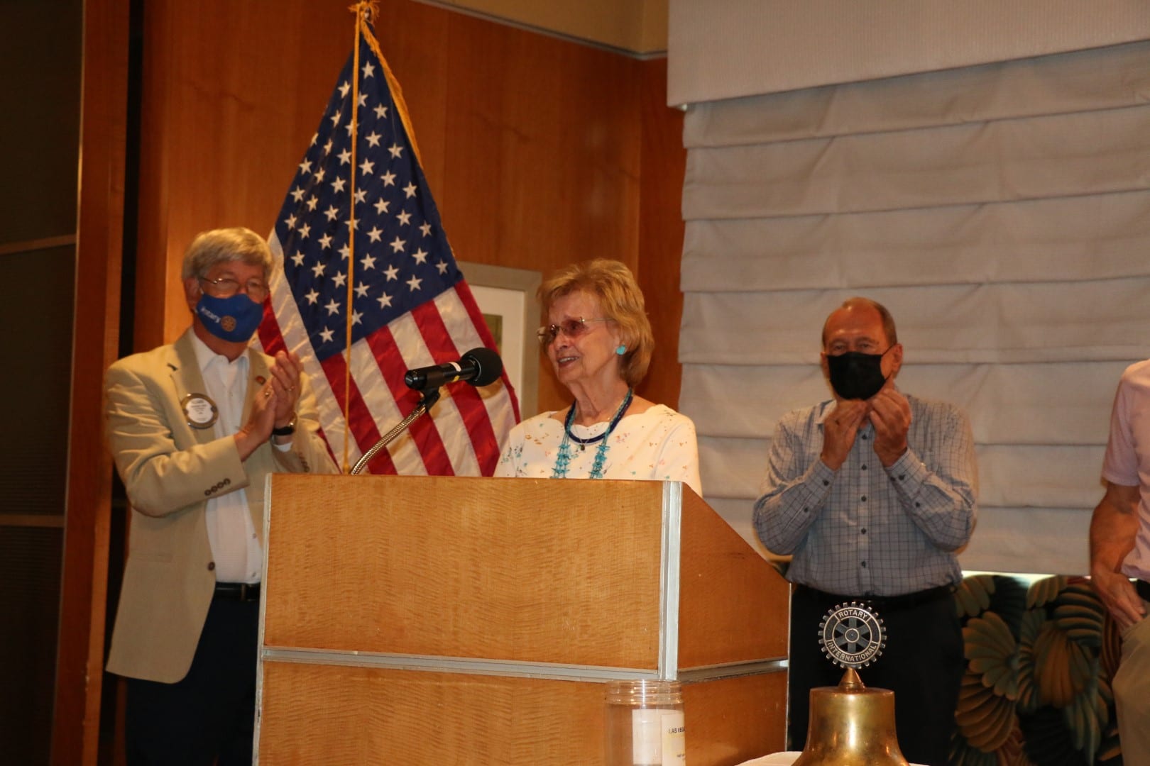 - PP Brock Fraser introduced Mercedes Hilbrecht, widow of Past Las Vegas Rotary Foundation President Ty Hilbrecht. Mercedes spoke of Ty’s love for the club and presented her gift of $25K to benefit the LVRF, Inc Permanent Fund, a legacy Ty established to continue Rotary programs that benefit our local and global communities in perpetuity.