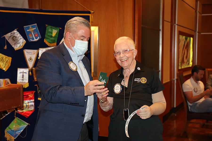 • PP Tom Thomas introduced Mayor Carolyn Goodman, who delivered a fast and furious state of the community update focusing on foibles, accountability, achievements, improvements, immediate needs and long-term goals for the city, the citizens, and local business. Mayor Goodman provided a good luck good health poker chip for the members. She was engaging and received standing applause from the members.