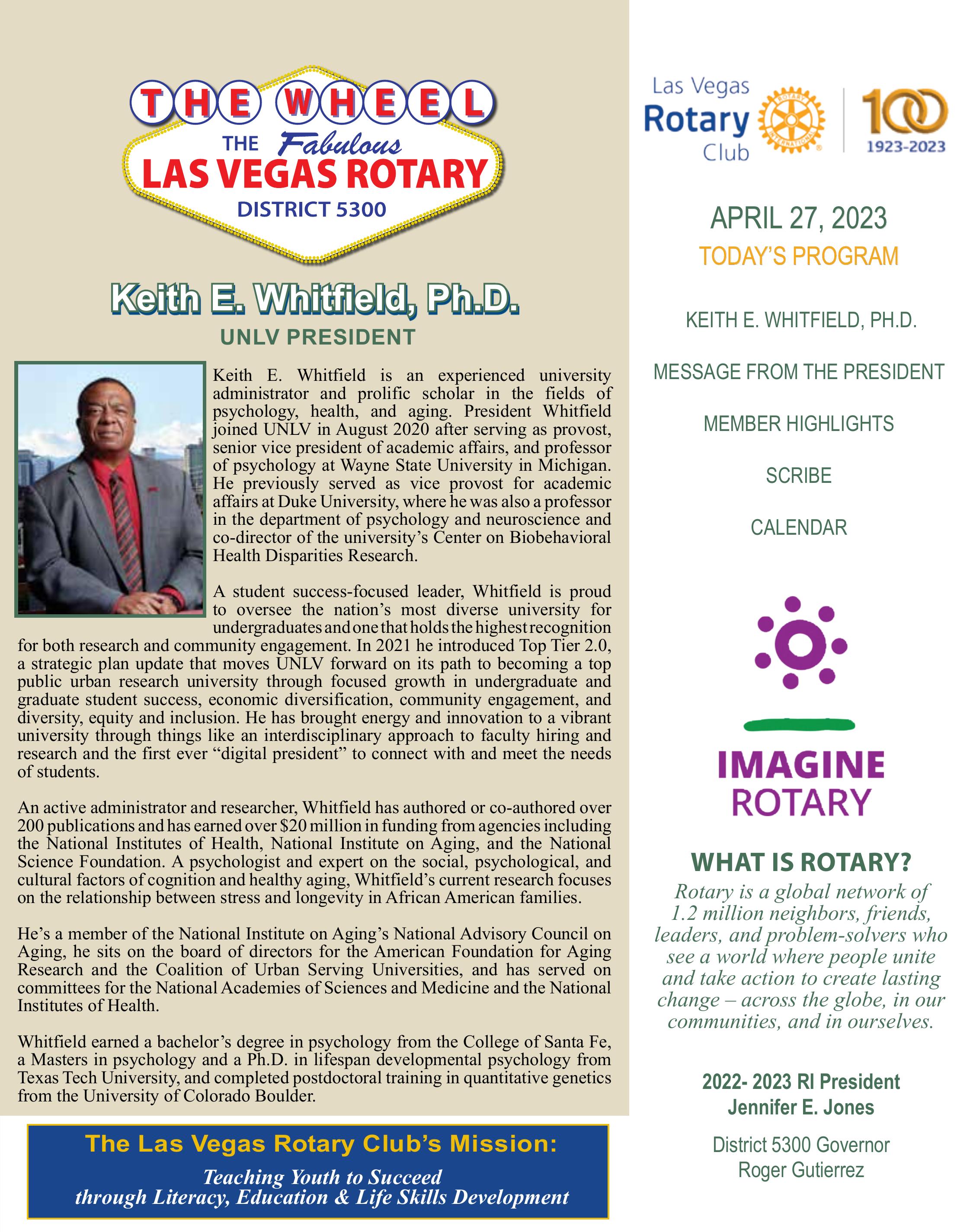 The Wheel for April 27, 2023 by Las Vegas Rotary ClubApr 27, 2023The Wheel0 comments The Wheel Download ← Previous Week Following Week → Submit a Comment Cancel replyYour email address will not be published. Required fields are marked *Comment * Name * Email * Website