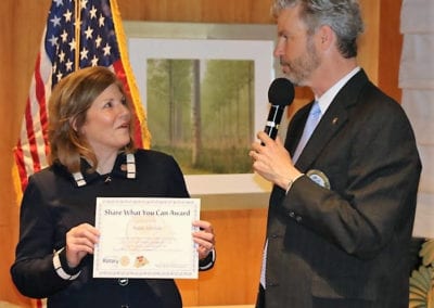 - President Jim presented our speaker with a “Share What You Can” award to benefit a veteran in need and adjourned the meeting.