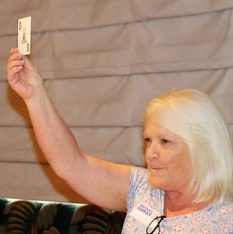 - The weekly drawing began at $2,430 plus this week’s donations. The ticket winner was Louise, the sister and guest of Arleen Sirois who pulled the winning Joker. Past President Randy Donald won the Lawry Bucks