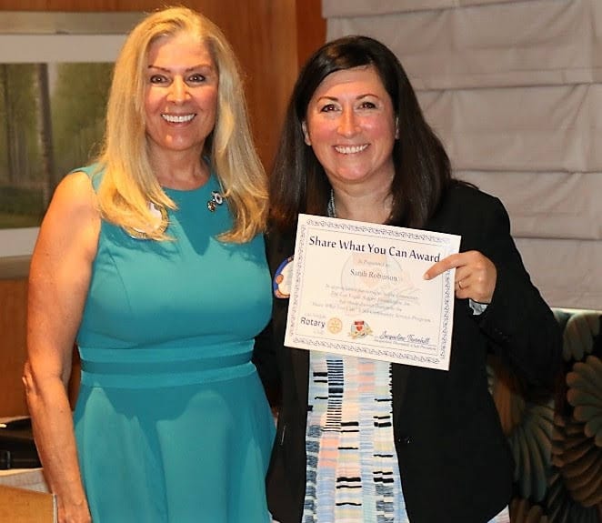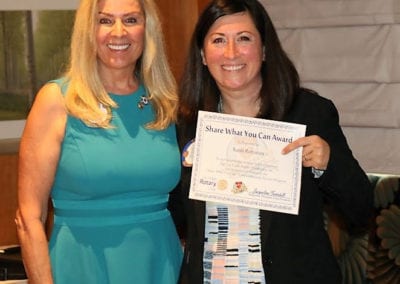 President Jackie presented our guest speaker Sarah Robinson from ShelterBox with our Share What You Can Award.