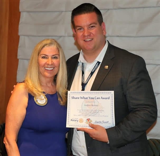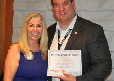 - President Jackie presented our speaker with a “Share What You Can” award to benefit the local USO and then adjourned the meeting.