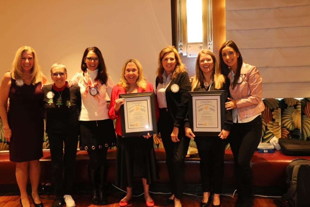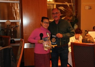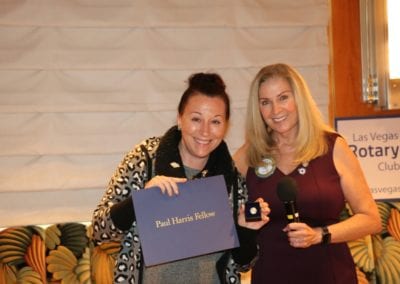 - President Jackie Thornhill recognizes the principal of Will Beckley elementary school Shannon Brown, by presenting her with a Paul Harris Fellowship;