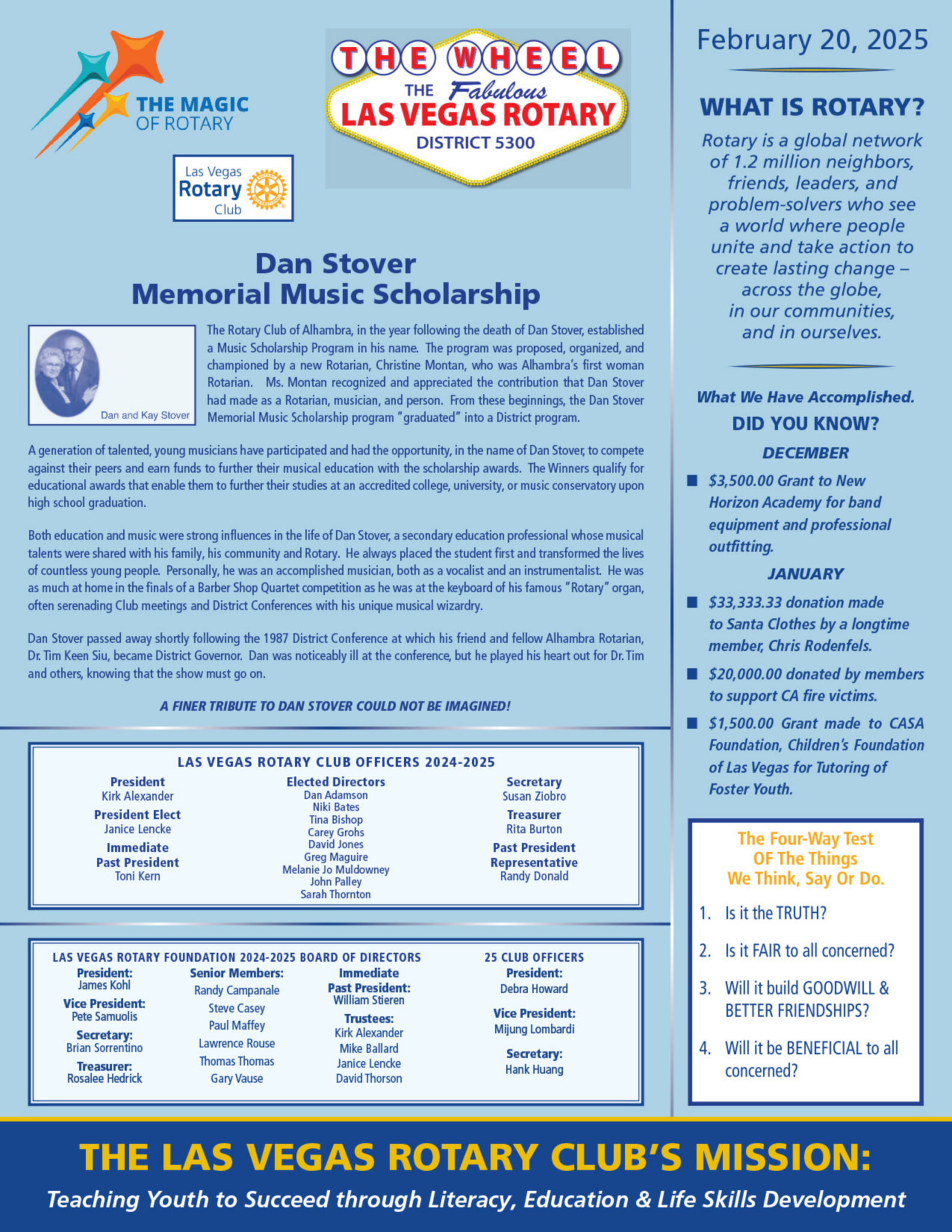 The Wheel for February 20, 2025 by Las Vegas Rotary ClubFeb 20, 2025The Wheel0 comments The Wheel Download ← Previous Week Following Week → Submit a Comment Cancel replyYour email address will not be published. Required fields are marked *Comment * Name * Email * Website