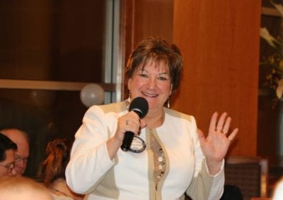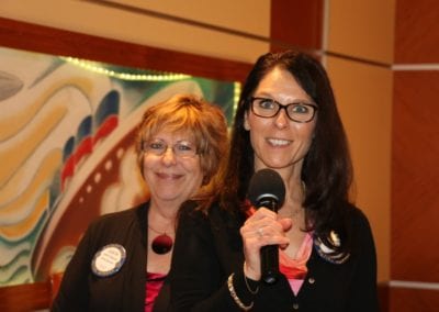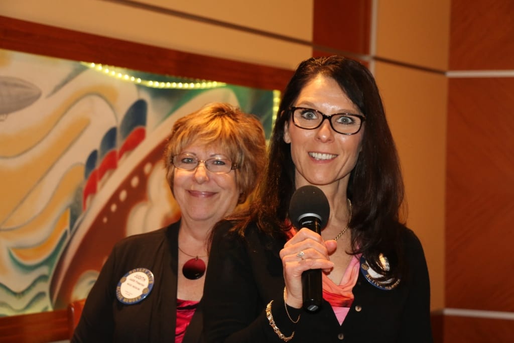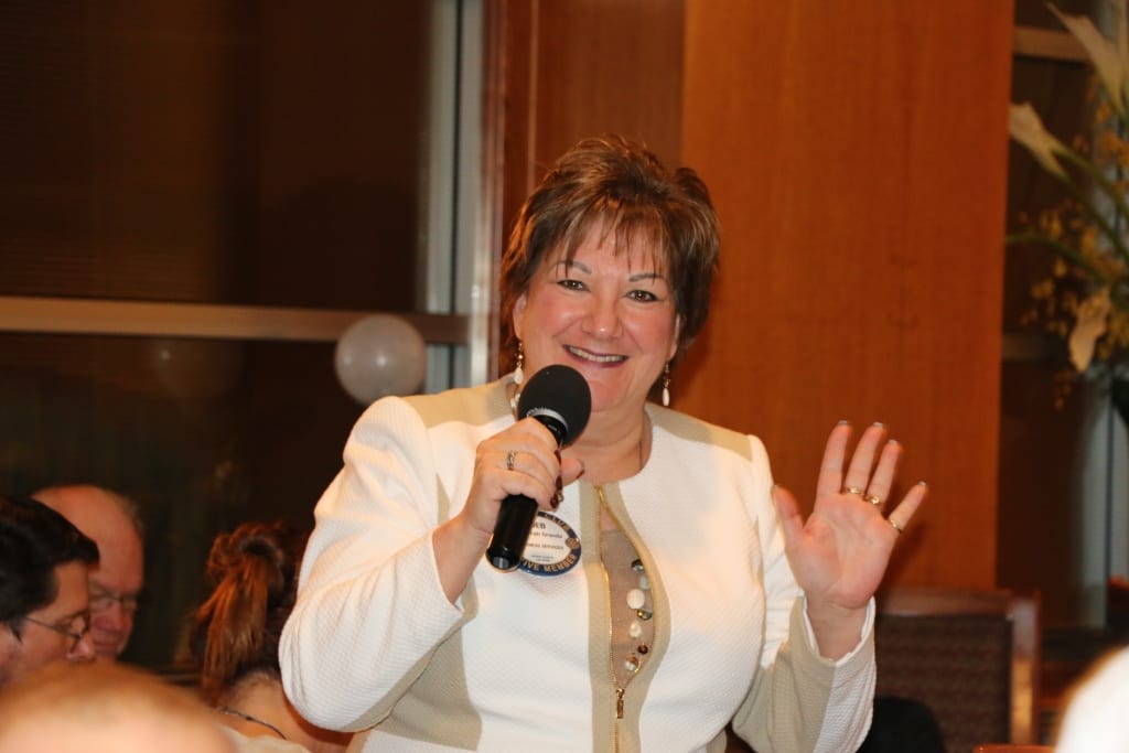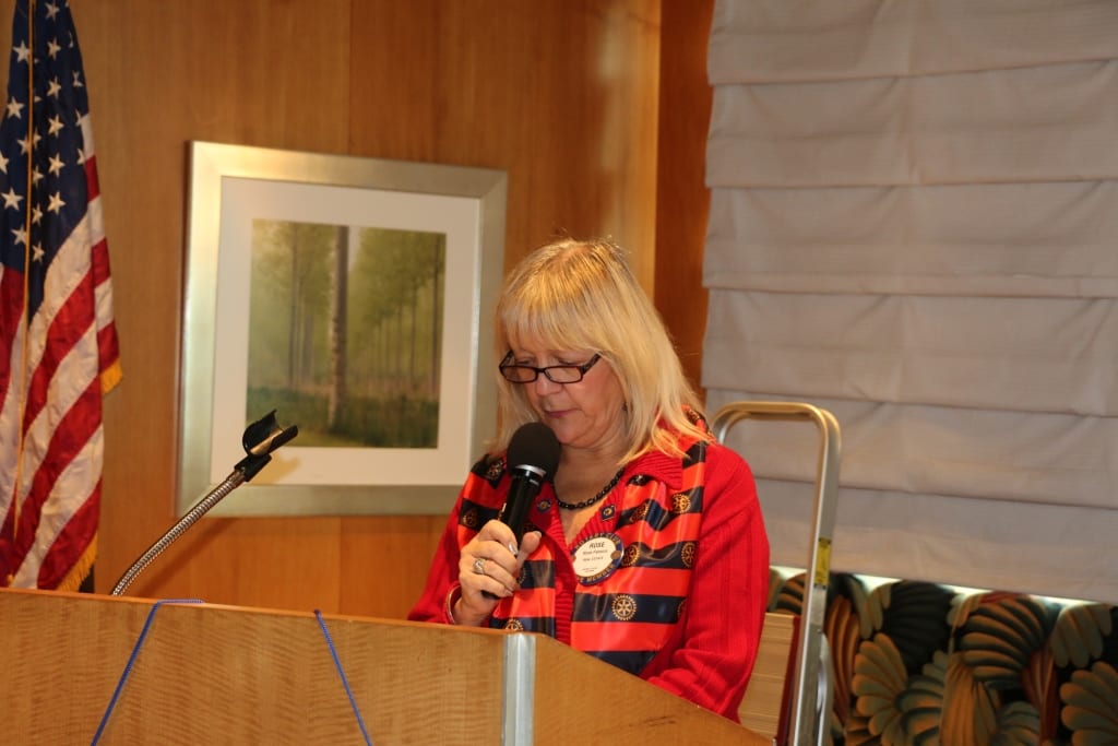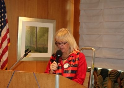 Sergeant at Arms Judith Pinkerton photo bombed Rosalee Hedrick’s announcement of the new member orientation.