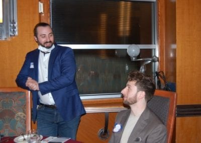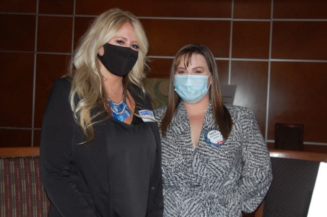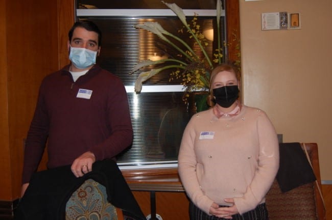 - The membership committee members Rosalee Hedrick and Toni Kern inducted our first new member of 2021, Aris Lazarou. Aris is with Mastroianni Fashions and was joined by his brother and father for the ceremony.