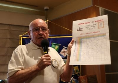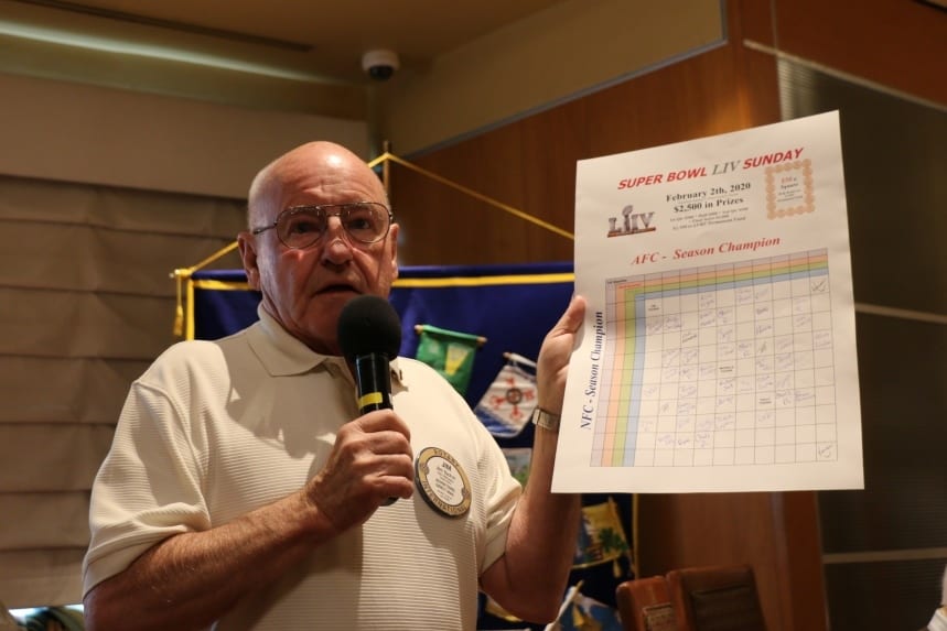 - Past President Jim Tucker announced that the Superbowl Board is $50 per square with $2500 in prizes and $2500 to the foundation.