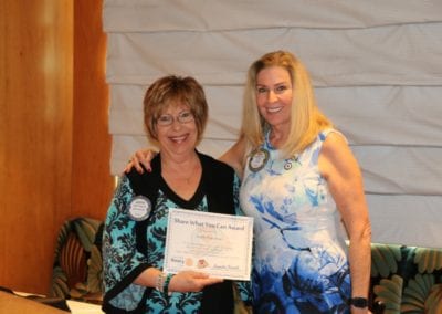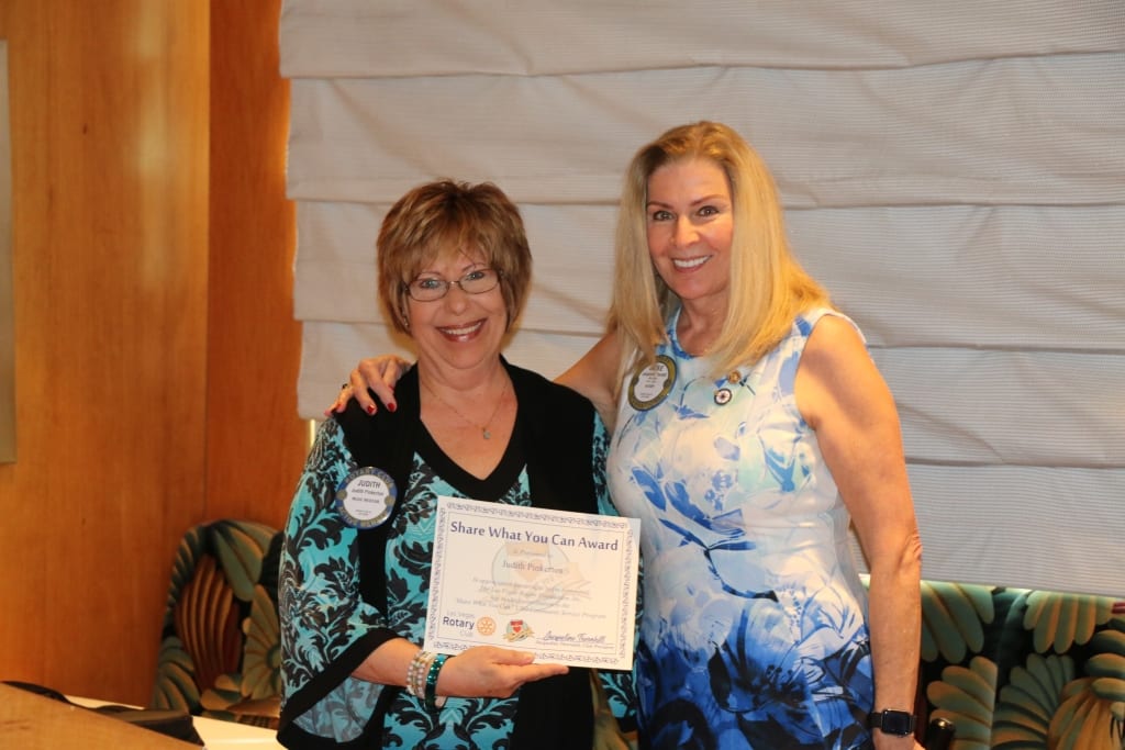 - President Jackie Thornhill presented our speaker with a “Share What You Can” award to benefit the local USO and then adjourned the meeting.