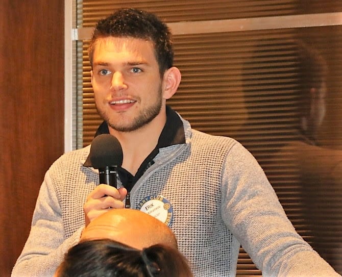 President Jim Kohl called the meeting to order. Glenn Meier gave the first invocation. Jerry Engel gave the second invocation. Jamie Goldsmith led the club in singing the National Anthem, followed by the Pledge of Allegiance. The Sergeant at Arms was Carey Grohs.- There were (2) International Rotarians, (2) visiting Rotarians and (2) Guests of Rotarians introduced. Also, Michael Cudiamat introduced our international exchange student from France, Pierre;