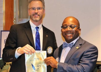 - President Jim discussed our efforts to prevent people from being afflicted by the scourge of polio and played the presentation video that included clips of UNICEF and WHO spokespeople talking about Rotary’s contribution to eradicate polio;