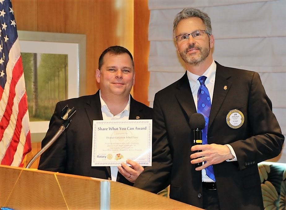 District Governor John Chase showed appreciation to Jimmelle Siarot for her participation in our Rotary Programs.