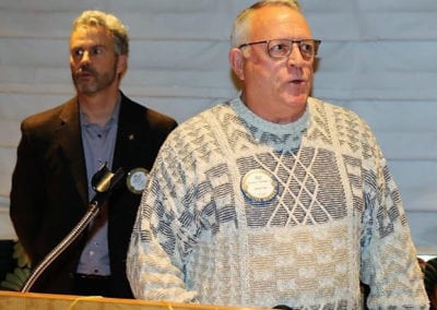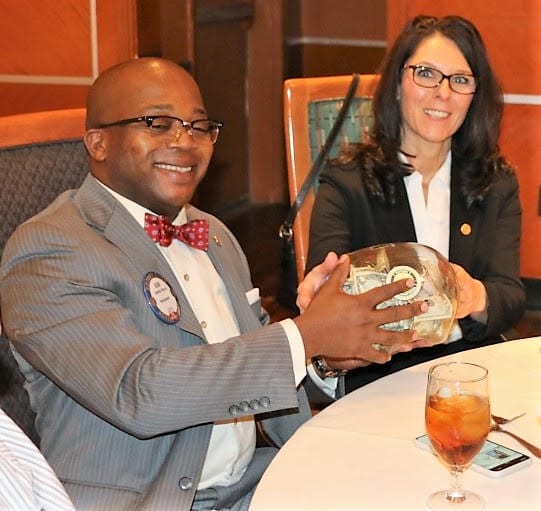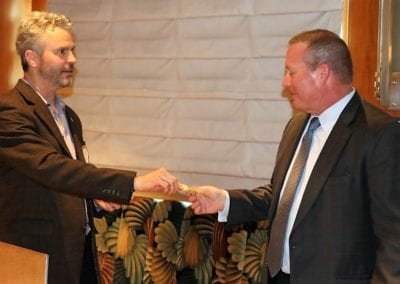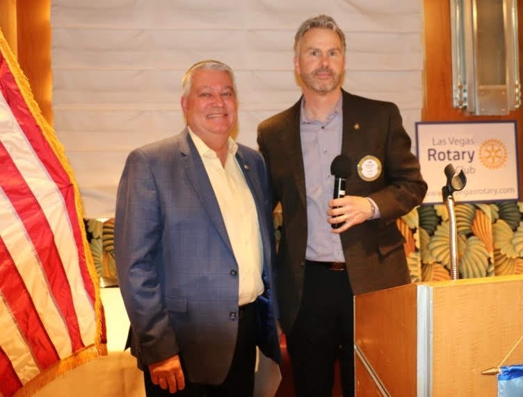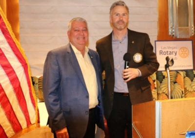 President Jim Kohl presents our speaker Terry Jicinsky VP of the LVCVA with our “Share What you Can Award”.