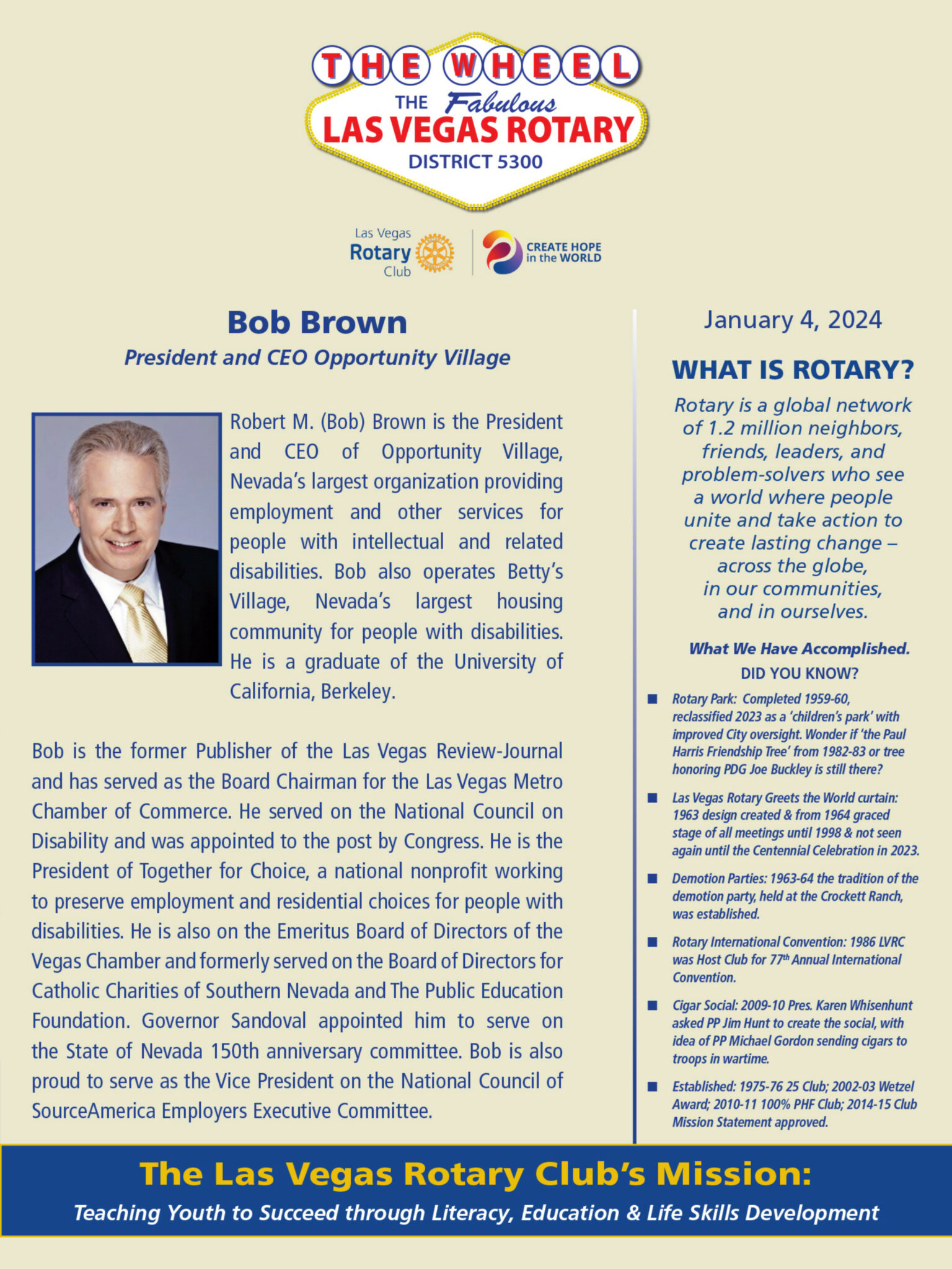 The Wheel for January 4, 2024 by Las Vegas Rotary ClubJan 4, 2024The Wheel0 comments The Wheel Download ← Previous Week Following Week → Submit a Comment Cancel replyYour email address will not be published. Required fields are marked *Comment * Name * Email * Website