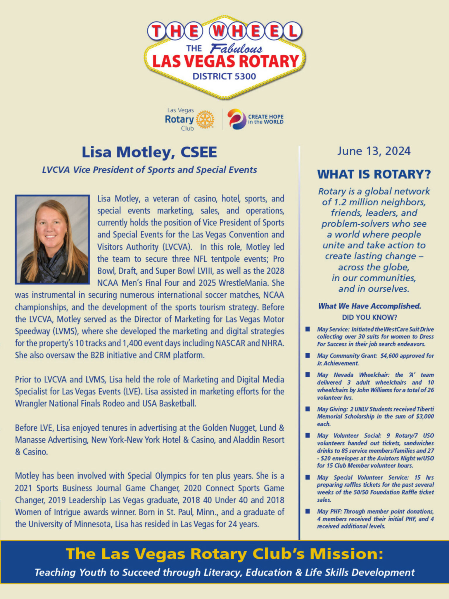 The Wheel for June 13, 2024 by Las Vegas Rotary ClubJun 13, 2024The Wheel0 comments The Wheel Download ← Previous Week Following Week → Submit a Comment Cancel replyYour email address will not be published. Required fields are marked *Comment * Name * Email * Website