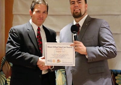 - President Michael presented our speaker with a “Share What You Can” award to benefit a veteran in need and then adjourned the meeting.