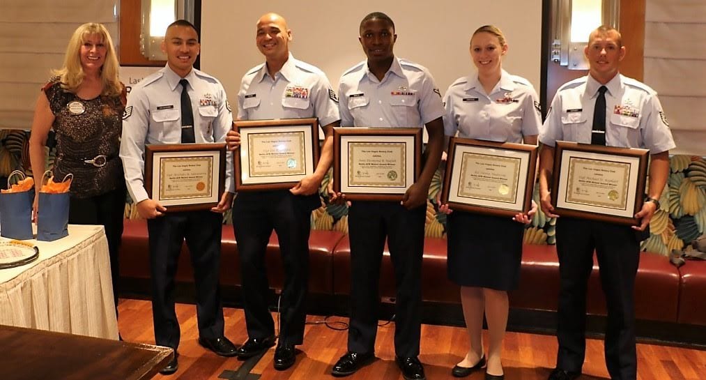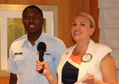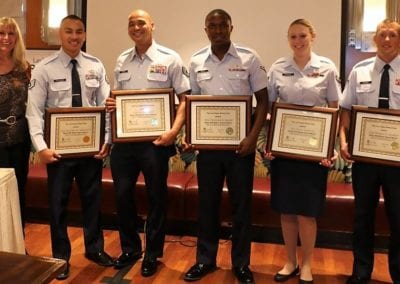 - PEE Jackie Thornhill introduced the Wetzel Award recipients: SSgt Aristides K. Salvatierra, SSgt Lee R. Devore, SSgt Michael D. Kephart, and A1C Sierra Anderson and Amn Desmond K Njafuh, noting this is the 15th year of the Wetzel Awards by our club.