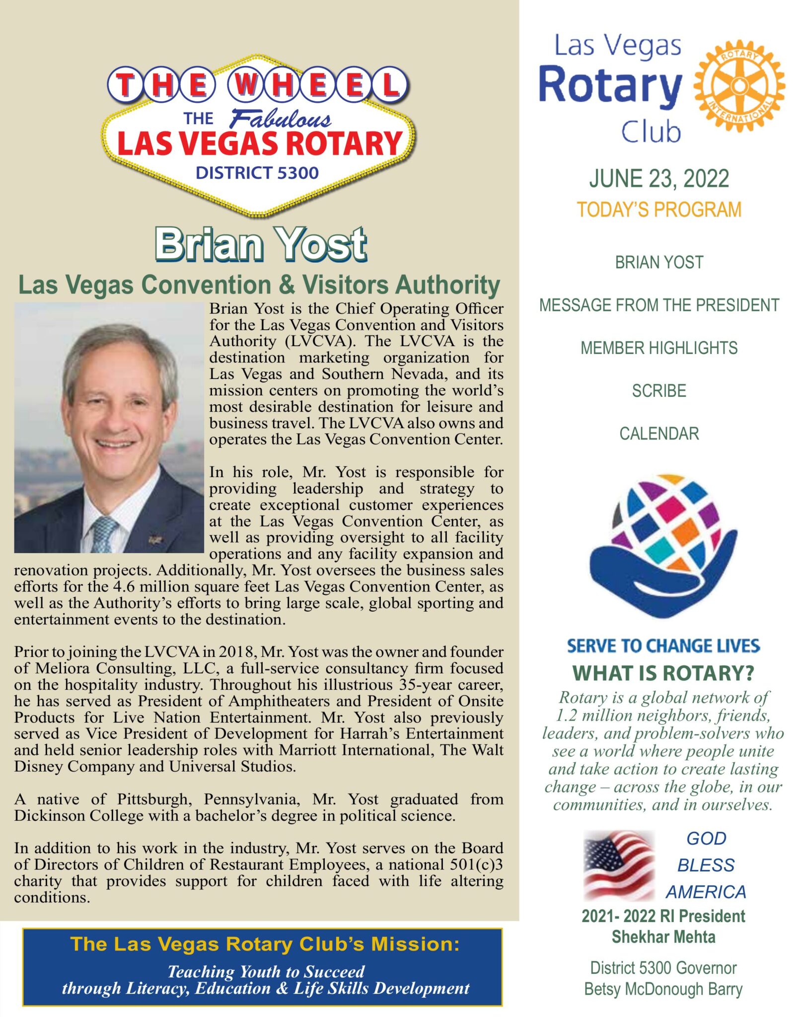 The Wheel for June 23, 2022 by Las Vegas Rotary ClubJun 23, 2022The Wheel0 comments The Wheel Download ← Previous Week Following Week → Submit a Comment Cancel replyYour email address will not be published. Required fields are marked *Comment * Name * Email * Website