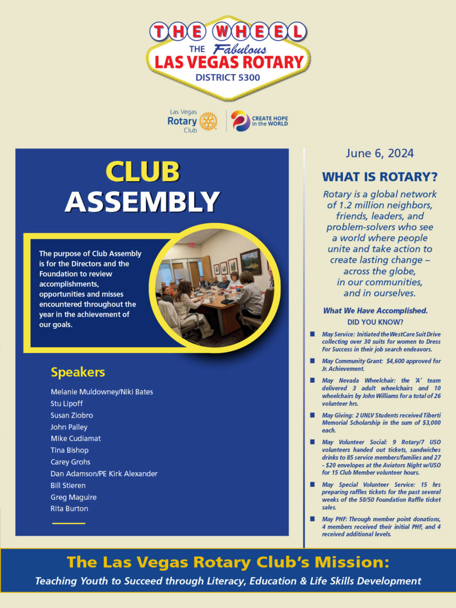 The Wheel for June 6, 2024 by Las Vegas Rotary ClubJun 6, 2024The Wheel0 comments The Wheel Download ← Previous Week Following Week → Submit a Comment Cancel replyYour email address will not be published. Required fields are marked *Comment * Name * Email * Website