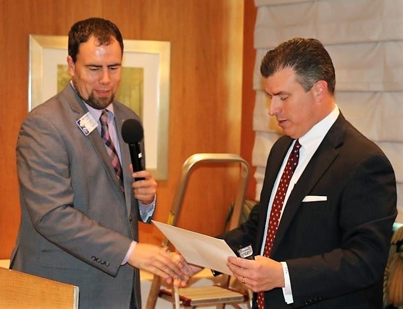 PP Michael presents our speaker Christopher Lille from the district attorneys office our Share What You Can Award.