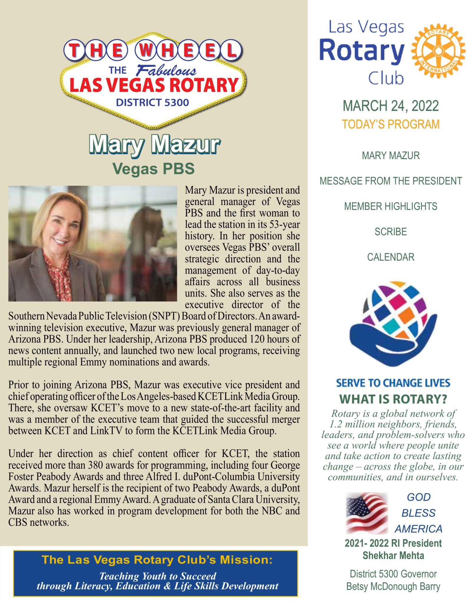 The Wheel for March 24, 2021 by Las Vegas Rotary ClubMar 24, 2022The Wheel0 comments The Wheel Download ← Previous Week Following Week → Submit a Comment Cancel replyYour email address will not be published. Required fields are marked *Comment * Name * Email * Website