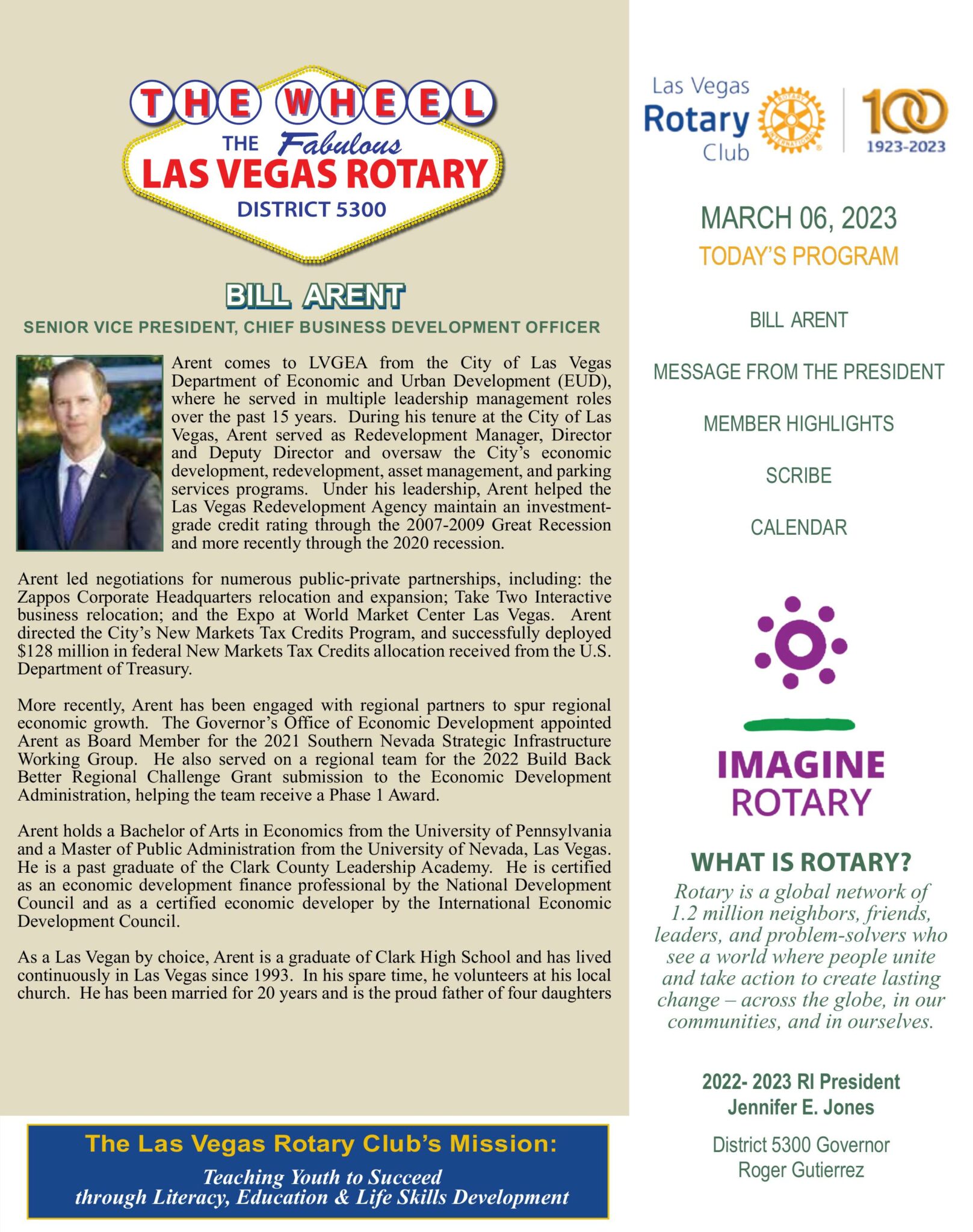 The Wheel for March 9, 2023 by Las Vegas Rotary ClubMar 9, 2023The Wheel0 comments The Wheel Download ← Previous Week Following Week → Submit a Comment Cancel replyYour email address will not be published. Required fields are marked *Comment * Name * Email * Website