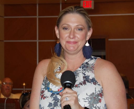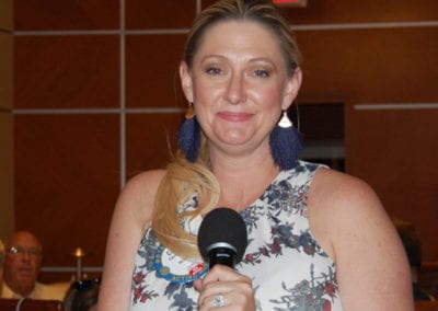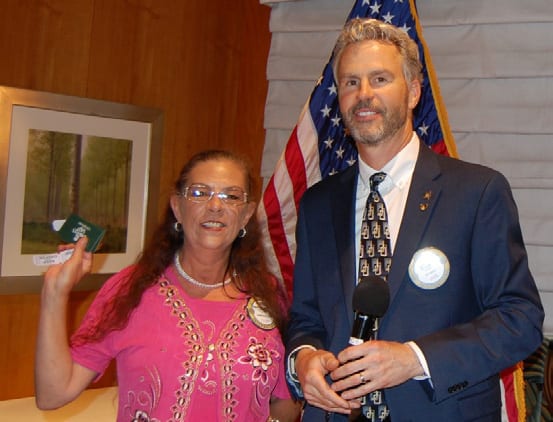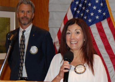 President Jim called the meeting to order. Francesca Gilbert gave the invocation. Jaime Goldsmith led the club in singing The Star Spangled Banner, followed by the Pledge of Allegiance. The Sergeant at Arms was Carolyn Sparks: