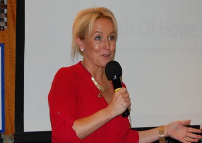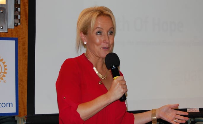 - PE Karen Whisenhunt introduced our program speakers, the Vocational Training Team from Australia, who work with Path of Hope, a collaboration between Rotary and the Salvation Army, whose mission is to break the inter-generational cycle of family and domestic violence. Rebecca Tolstoy, Mark Crake, Margaret MacDonaldStg Darrel Hagan and Alison Kirby presented on the District 5300 and District 9455 (in Western Australia) partnership thru the Path of Hope approach that mobilizes the organizational capacity of Rotarians to support agencies and services that provide safety and empowerment to women and their children escaping family and domestic violence.