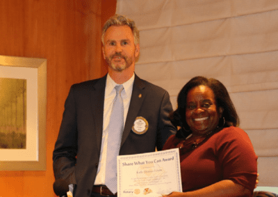 President Jim presented our speaker Kathi Thomas-Gibson of the Courtyard Homeless Resource Center with our Share What You Can Award.